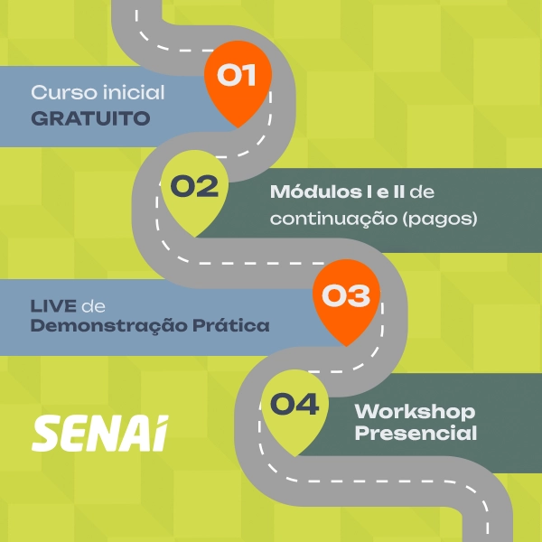 As Trilhas de Capacitação do SENAI Bahia são jornadas educativas compostas por cursos de curta duração profissionalizantes, que podem ser feitos de forma independente, mas se complementam para levar você a um nível mais alto de entendimento sobre as principais tendências de mercado. O 1º curso é gratuito e seu estudo continua a medida que você for contratando novos módulos de aprofundamento. Uma jornada 100% online, prática e flexível para quem busca aprimoramento profissional adaptável à própria rotina.